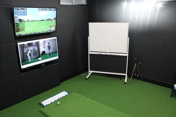 個室でのレッスンで、レッスンごとにスイングを撮影したり、ショットーの弾道データを測定したりします。